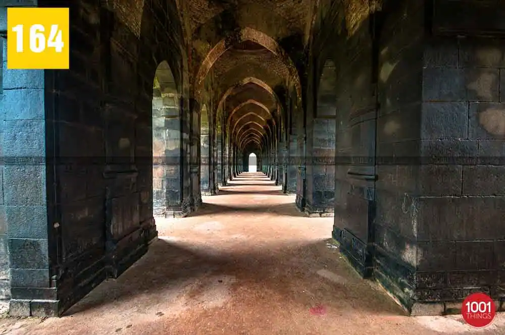 The porch or the verandah subsequently opens onto a prayer hall that comprises 3 aisles with 11 windows each. Similar to the porch or the verandahs, the prayer halls are now in ruins and is totally engulfed with pendentives.