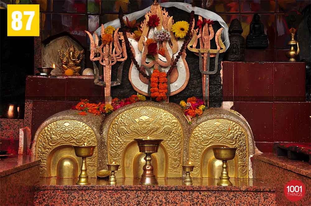 The present day temple is built in the Hindu architecture. It is round in shape with the Shiva-linga placed at the center. Along with the shiva-linga there are also idols of Buddha. The statue of Nandi, the scared bull of Lord Shiva adorns the entrance of the temple. The main entrance is lined by the Hindu bells and the Buddhist prayer flags. Among all the important festival celebrated here Siva Ratri is the most important, during this festival people are seen in huge number to offer prayers at Mahakal Temple. Other than Shiv Ratri, many other pujas like Saraswathi Puja, Ganesh Puja, Hanuman Puja, Durga Matha Puja, Buddha Jyanti etc are celebrated with grandeur. The tranquil atmosphere here provides a very spiritual experience.
