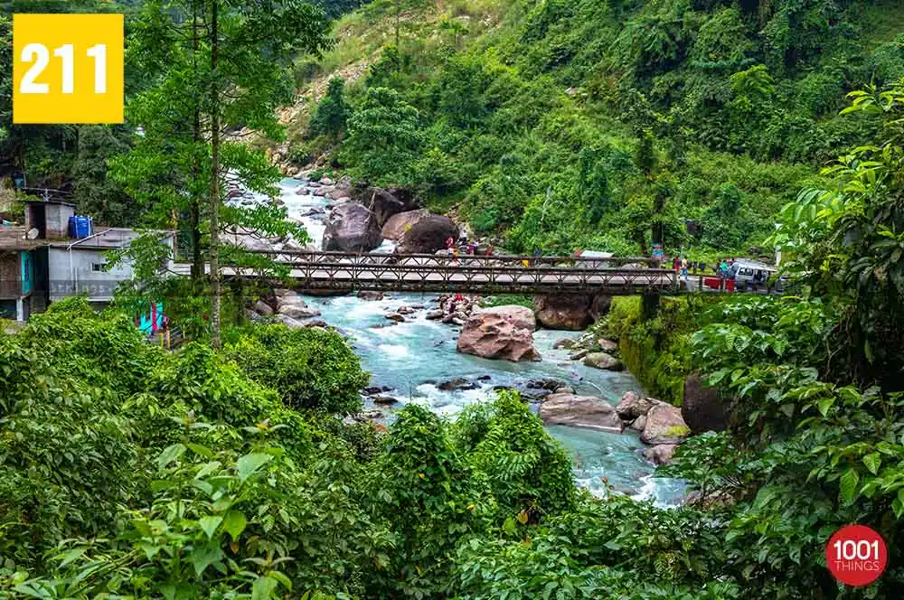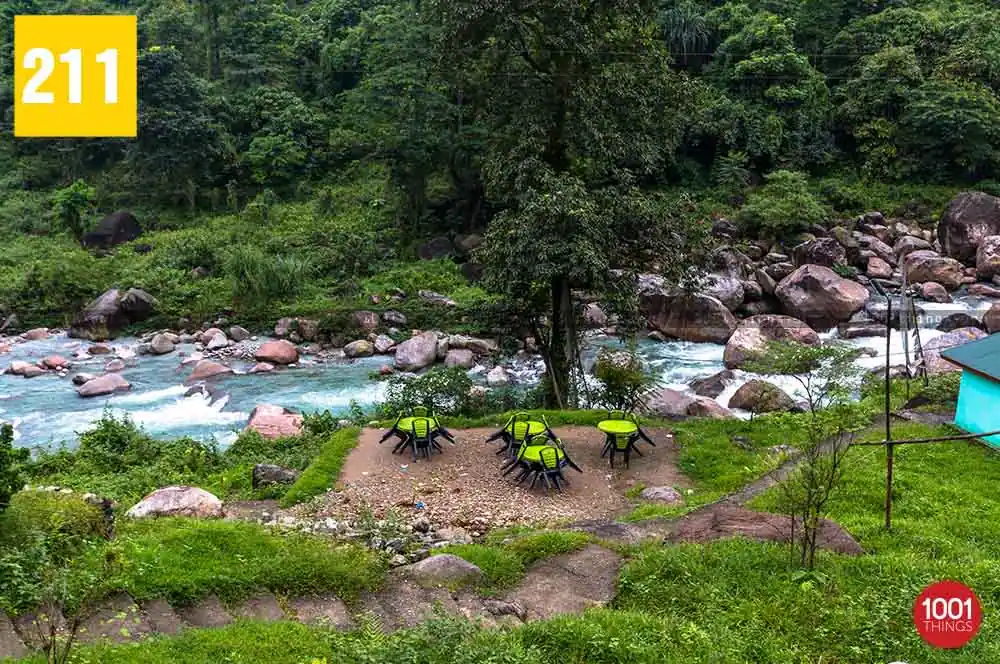 The best part of adventuring at Rocky Island is you get to connect your soul with nature while camping under the starry night and listening to the sound of gurgling river stream while basking in the bounty of Mother Nature. The journey towards in itself an unforgettable experience that is filled with pictorial views of the changing landscape from dense forest area to the lush green tea gardens. And when the road changes into the unpaved trails full of pebbles while finally crossing the hanging bridge over the river Murti on foot on the sight of the sparkling river stream greets the travellers.