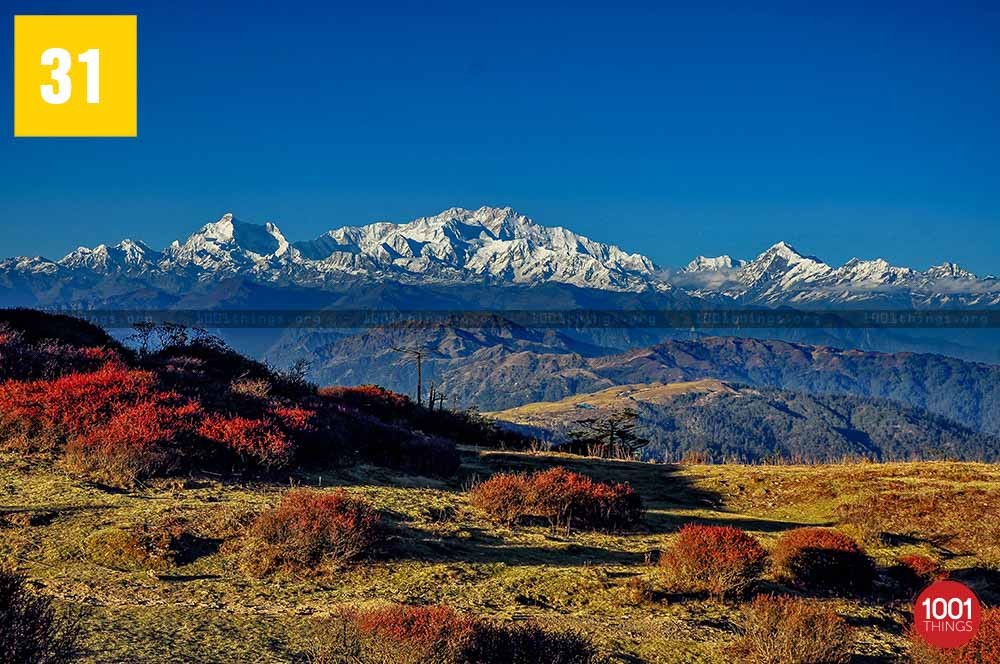 Sandakphu has a small village on the peak with few hostels. Four of the five highest peaks in the world, Everest, Kangchenjunga, Lhotse and Makalu can be seen from its summit. From Sandakphu the best view of the mountain Kangchenjunga is possible, which is known as the Sleeping Buddha or the Sleeping Shiva.