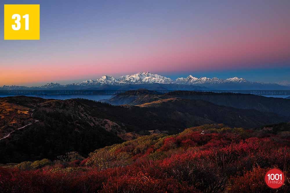 Sandakphu is a wonderland for the trekkers. It’s located at an altitude of 11,929ft (i.e. 3,636 meters) in Darjeeling district and on the north west of Darjeeling hill town. The trek to Sandakphu goes all along the Singalila range. There are over 600 varieties of orchids in this area, the largest concentration in any single geographical area in the world. One can see them bloom in spring.
