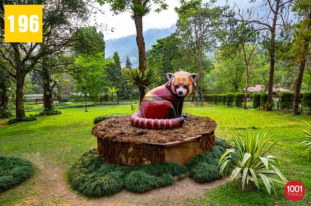 The distinctly shaped hedges bearing different forms and the idols of red pandas, snow leopards adds to its appeal. The canopy of greens and the bench underneath ideally serves as a place of relaxation. The sunlight barely penetrates the dense vegetation at some areas of the garden. There is a mini pool. They constructed a mini foot bridge over it.. You can get a fascinating sight of the landscapes and River Rani plunging down the valley at the distance.