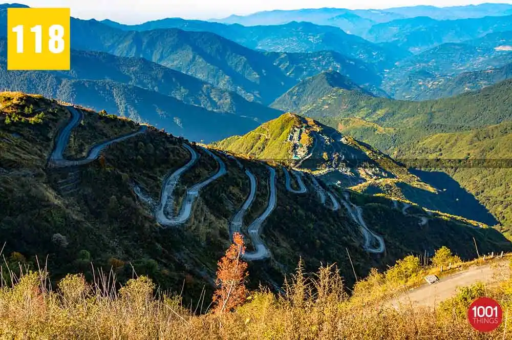 Zuluk is famous for the winding, zigzag road comprised of 32 hairpin turns which itself is a unique engineering feat. It is a treat to the eyes to witness the beauty of this winding road from the Thambi viewpoint, situated at the elevation of 11,200 ft and 14 km from Zuluk.