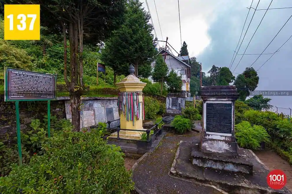 In 1842 he planned to travel to Lhasa but he was destined to go only as far as Darjeeling unfortunately, he contracted Malaria during the travels in the Terai and died from the fever in Darjeeling. The Asiatic Society of Bengal erected the monument over his grave, the Hungarian memorial tablet was placed on it. The Tomb is situated in the Old Cemetry located about a mile from Darjeeling Town on Lebong Cart Road, which offers the wonderful view of the tea gardens below and overlooks the Darjeeling town landscape. This is a hexagonal memorial tomb built on a low platform and over the grave of Alexander. The grave is nicely fenced and decorated with beautiful flower beds around it.