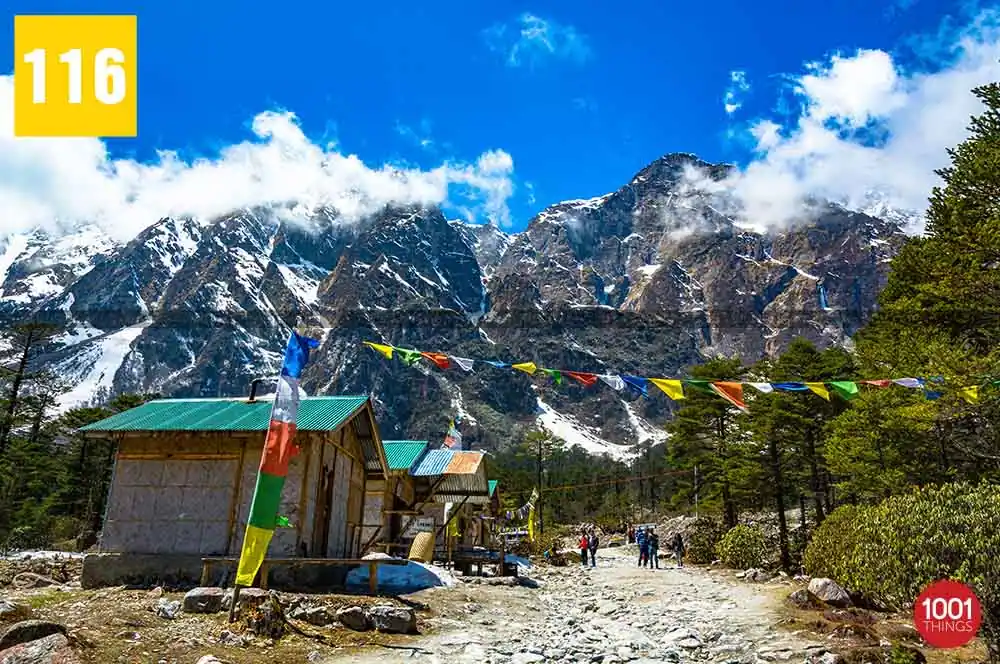 Apart from the incredible snowcapped peaks, valley of wildflowers and the eye-soothing scenic appeal, Yumthang Valley is well-known for its therapeutic hot springs. The hotspring of Yumthang Village is located at an easily accessible spot. A hut with pools overflowing with waters from hot springs is built for the convenience of the visitors.